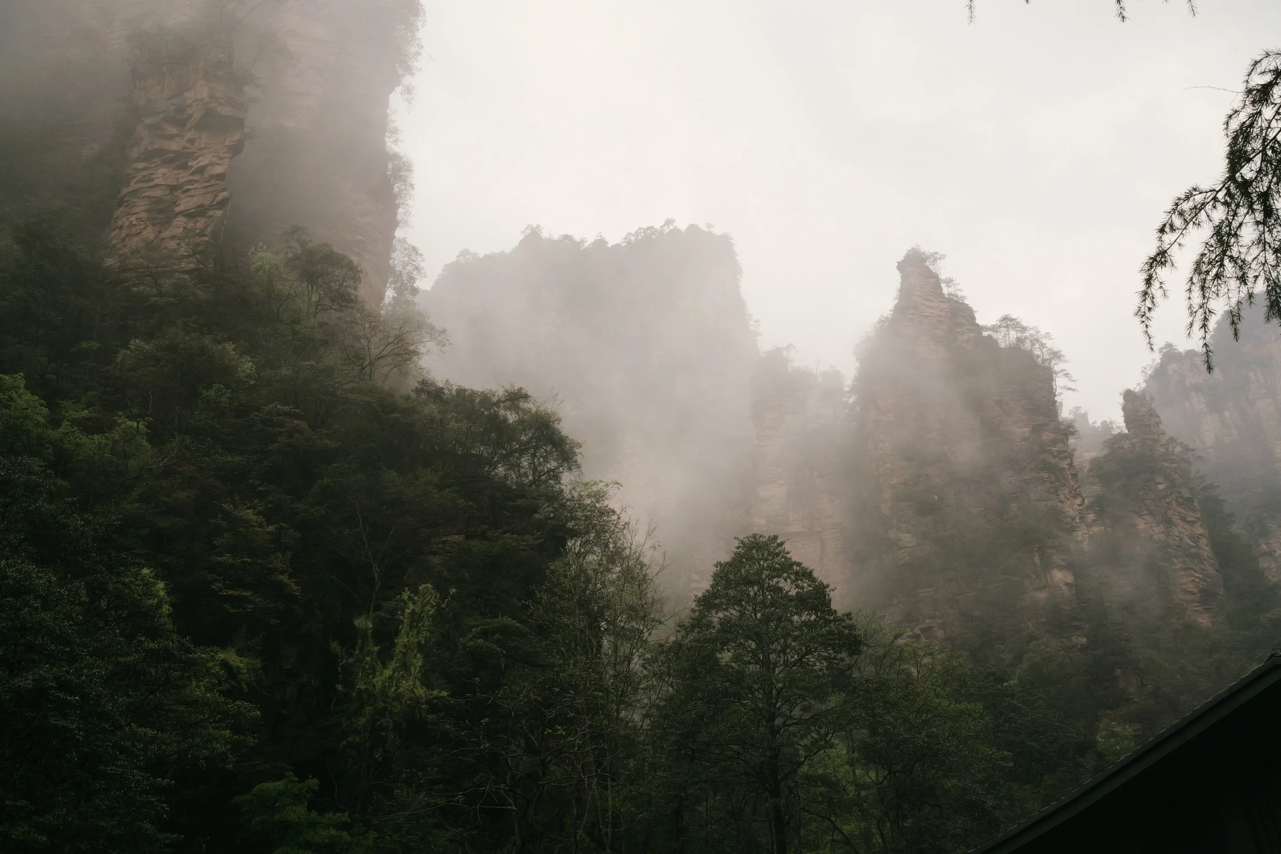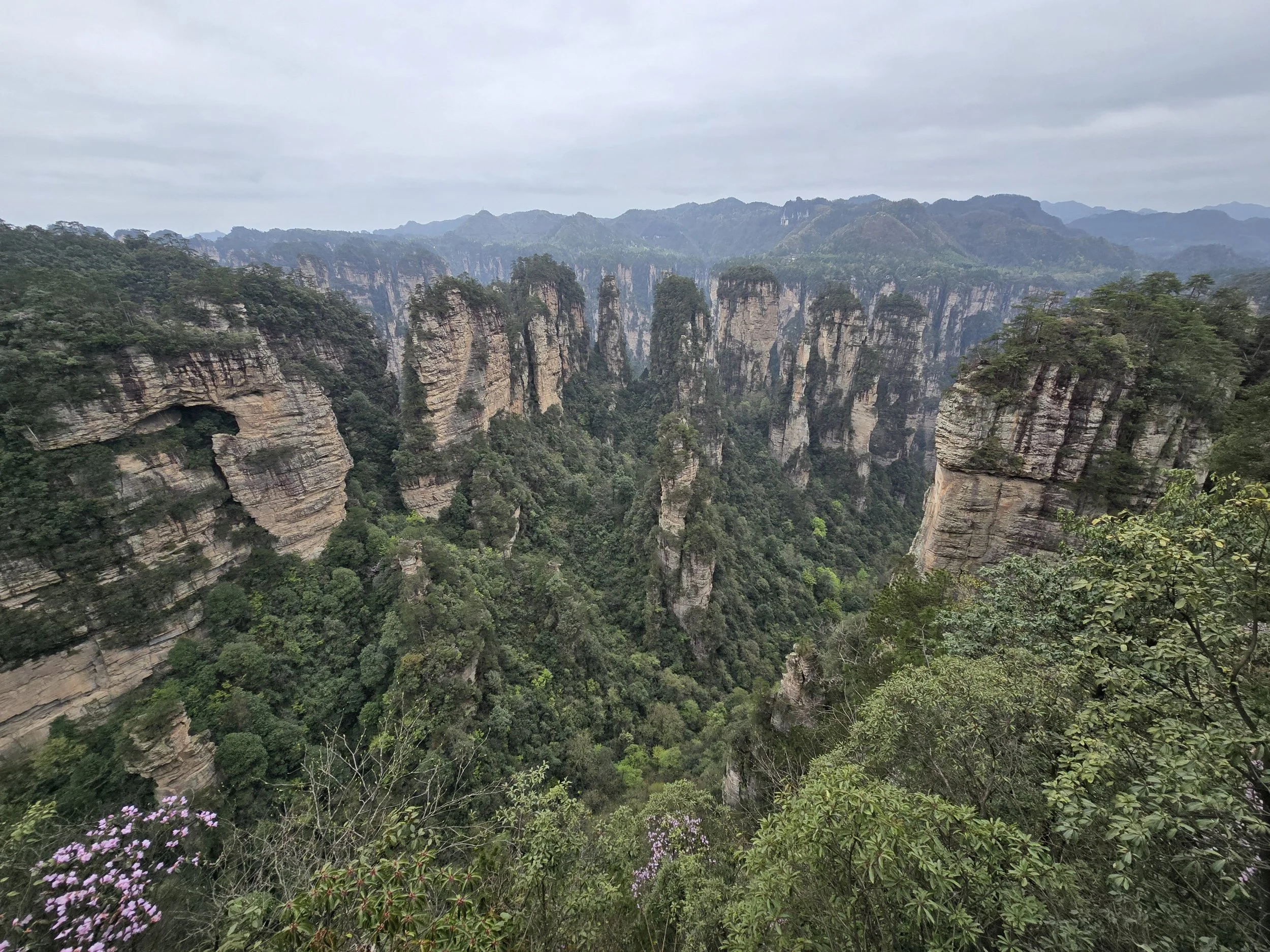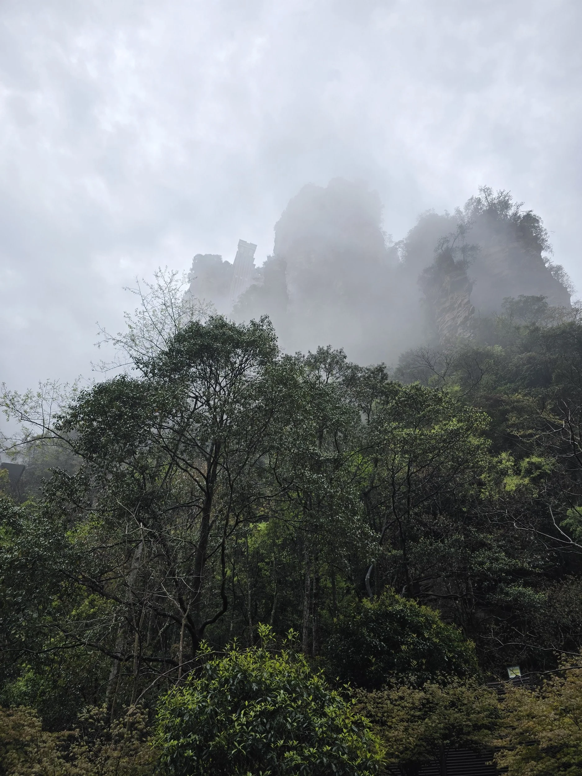 A day to stretch the legs, Avatar mountain day. We are in the beautiful Zhangjiajie area. We woke up around 06:00 as we bought an entry ticket to the site for 07:00. We had breakfast at a local place. Eat some bao's and slowly wake up. We make our way to the entrance about 07:00 and took a bus to the famous elevator. This elevator will bring you about 350 meters high in about a couple seconds, from here you get a beautiful view of the mountain range. When we were up the mountain we had some time to take pictures of the surrounding. The plateau is so big it has its own business service running. So when we finished on the first sight seeing we took the bus to the second sight seeing. This was the location that inspired for the Avatar the most, but I found a meat skewer that inspired me to eat. We walked for about 20 minutes along the ridge looking at the surrounding. Everything is well and beautiful maintained. After the 20 minites or so walked we took the bus to our next destination, the cable car. We got of the bus down the hill, and the parents of Ming got a bit tired, so they used the carry service to get themselves to the top, and Ming and me walked. On the top we had a small coffee break and got something to eat during the cable car ride. It brought us between the mountains, overlooking some rice fields while being in between the trees. We got out at a in between spot and took the bus to the next location. Here we had a climb down a hill on some stairs trough a beautiful forest. When arriving down we again took a bus to the next location. It was a cable ride to the top of another plateau, where on top the parents and us splitted. The next walk around the ridge and scenery took us about one and a half hour. There were many monkeys to see and I almost got in a fight with one for coming to close. We had a quick lunch on the plateau and when finished we took the cable car back down and a bus ride to the next location. This was a scenic route that we started and about 2 km in we found out we still had about 4 km to go. So time to get the hiking spirit in and we started walking. It took us all the way next to the river in between the mountains. As some of the spots it felt magical and pictures will not do it justice. When the 6km hike was finished we took a bus back to our entrance and walked to the hotel, here it was time for some needed rest. After a hour we got out again and found something to eat with the parents again. We have to get up early tommorow to rush back to Chongqing. Since Ming was never properly registered for the birth location we have to go back and fix it, as we need the documents for our mariage. So time to sleep and get up at 06:00 again.